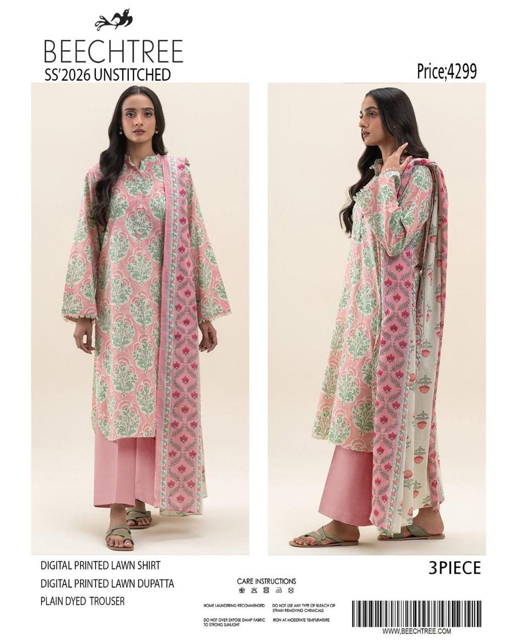 Beechtree : Digital Lawn Shirt, Plain Dyed Trouser & Digital Lawn Dupatta!